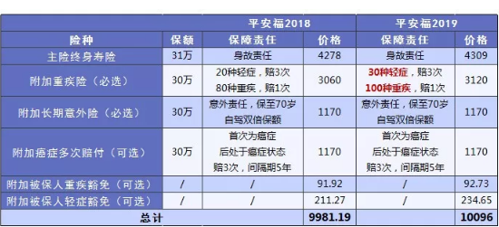 好在,它的保費也沒(méi)有增加太多,所以如果是喜歡平安福的朋友,確實(shí)2019要比2018好一些。