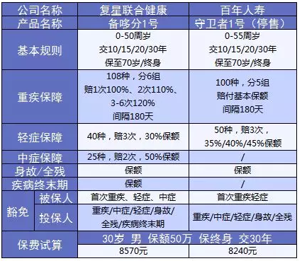 與對標的守衛者1號相比,備哆分1號在保障內容上,增加了1次重疾保障,2次中癥保障和疾病終末期保障。