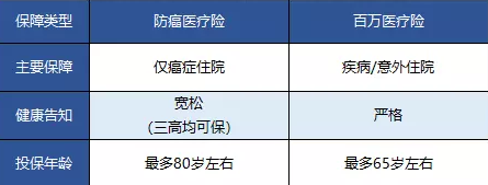 所以防癌醫療保險是百萬(wàn)醫療險的簡(jiǎn)化版本,讓我們來(lái)看看兩者之間的具體差異: