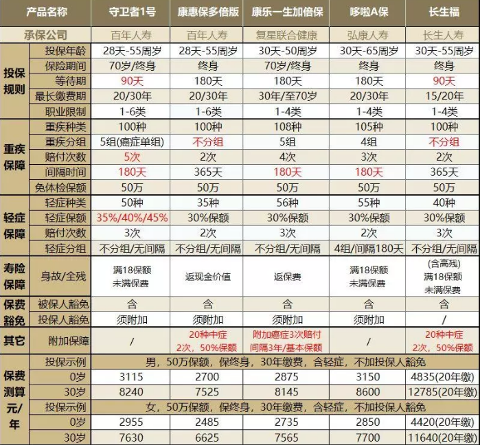 如果追求全面的保障:守衛者1號和康樂(lè )一生雙重保護是一個(gè)不錯的選擇。守衛者1號在所有方面都非常直言不諱,康樂(lè )一生倍增版本可以添加癌癥多次賠付。