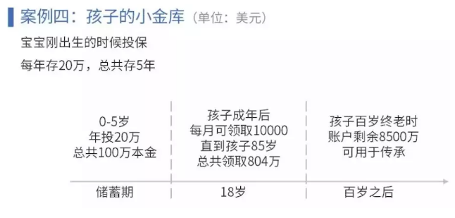 當然,此類(lèi)產(chǎn)品不僅是高凈值家庭的專(zhuān)利,香港保險是海外資產(chǎn)投資的門(mén)檻較低,投資門(mén)檻不高,適合廣大中產(chǎn)家庭安排自己的長(cháng)期儲蓄計劃:(一大波例子正在路上)