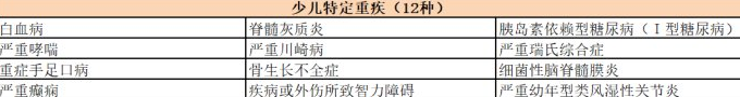 兒童特定的嚴重疾?。涸诒槐kU人年滿(mǎn)18周歲之前,第一次被診斷出患有特定的嚴重疾?。?2種類(lèi)型)。在支付重大疾病保險費的基礎上,額外給付保險費為100%。
