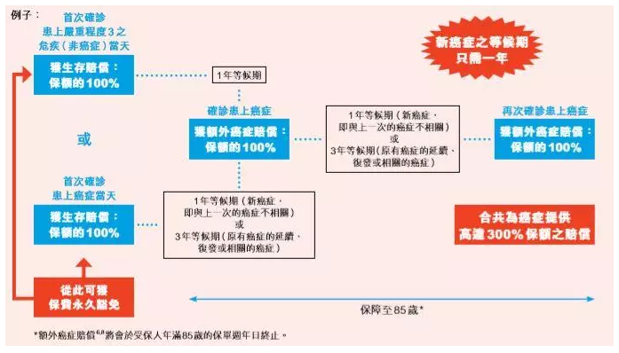 治療癌癥的技術(shù)距離千里之遠,但往往有可能再次發(fā)生。為了向被保險人提供抗擊癌癥的經(jīng)濟支持,計劃是為被保險人提供高達200%的保額的額外癌癥補償,以及計劃的首次生存補償,總計高達300%的保額補償。無(wú)論是新的癌癥(與最后的癌癥無(wú)關(guān))還是原始癌癥、復發(fā)或相關(guān)癌癥的延續,都可以通過(guò)這種額外的癌癥補償來(lái)彌補。