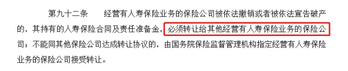 原公司的保險公司將被中國保險監督管理委員會(huì )指定的其他保險公司或保險公司接受。
