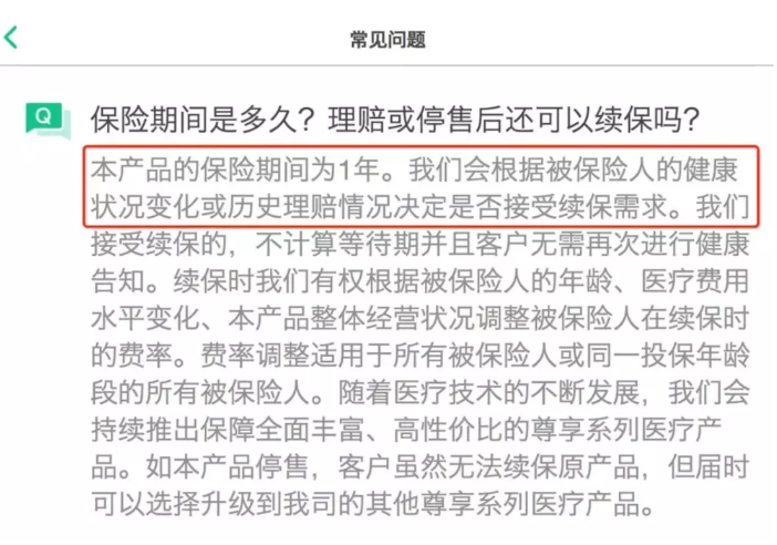 也就是說(shuō),隨著(zhù)父母年齡的增長(cháng),身體出現了一個(gè)小問(wèn)題。當最需要保險時(shí),尊享e生爸媽版可能不續保。簡(jiǎn)而言之,醫療費用的報銷(xiāo)可能只持續一年。僅此一點(diǎn),我不建議使用此尊享e生爸媽版。